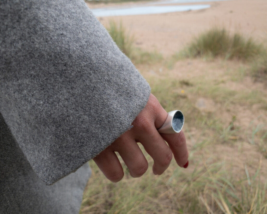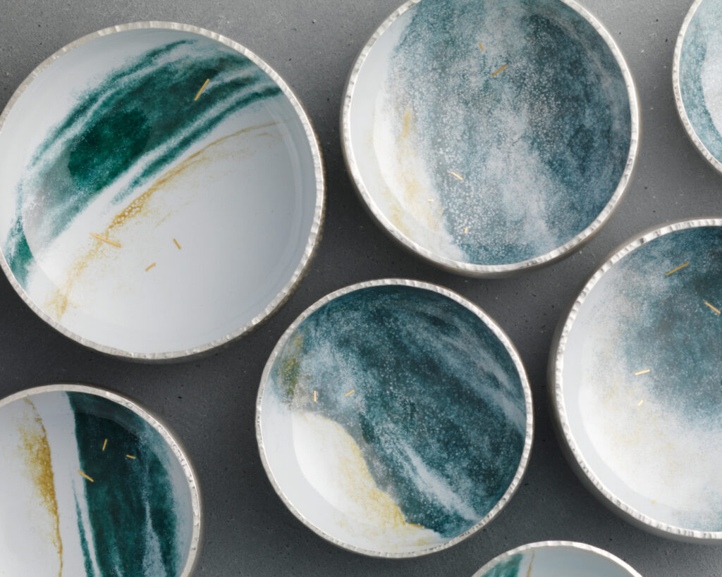 The collections represent memories of being by the sea, a glimpsed moment beautifully preserved within the enamel. Each piece of jewellery is a wearable memory capturing the atmosphere of the coast, while the silver bowls emulate the organic shapes of pebbles found along the shoreline, evoking a tactile connection to the coastal landscape.