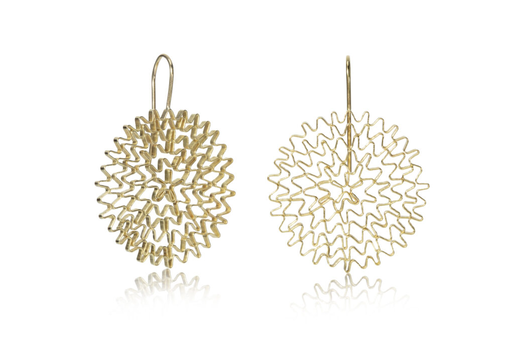 Gillian’s creative making process draws inspiration from her childhood memories of Hong Kong’s amazing bamboo scaffold structures, each with their own distinctive flow. She reinterprets these beautiful and complex patterns through the meticulous manipulation of precious metal wire; folding, pleating and pinching strips of silver and gold, reimagining them into more playful and flowing forms. Each unique handcrafted piece of jewellery captures the tensions between structure and fluidity, strength and delicacy, reflecting the contradictions inherent in the scaffolding that inspired her.