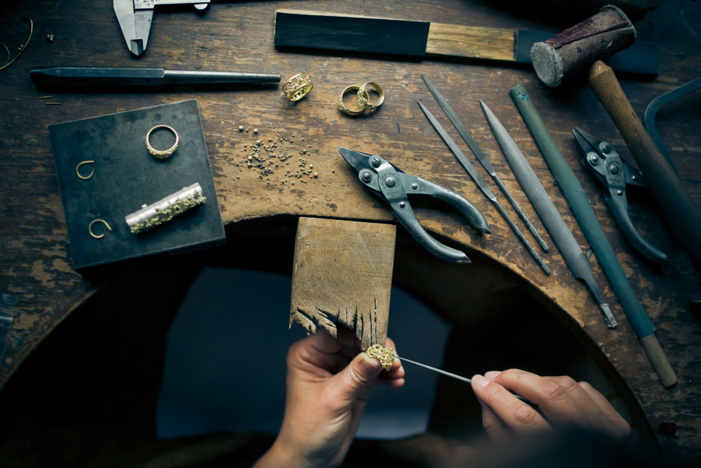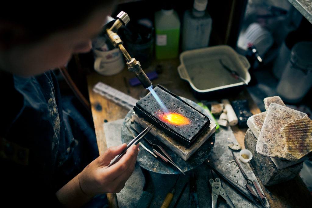 Granulation is an extremely delicate and time-intensive process. Hannah handcrafts each unique granule on a charcoal block before they are cleaned and individually applied to form her complex designs. The bonding of these minute precious granules requires great skill and precision, a careful steady hand and, above all, patience.