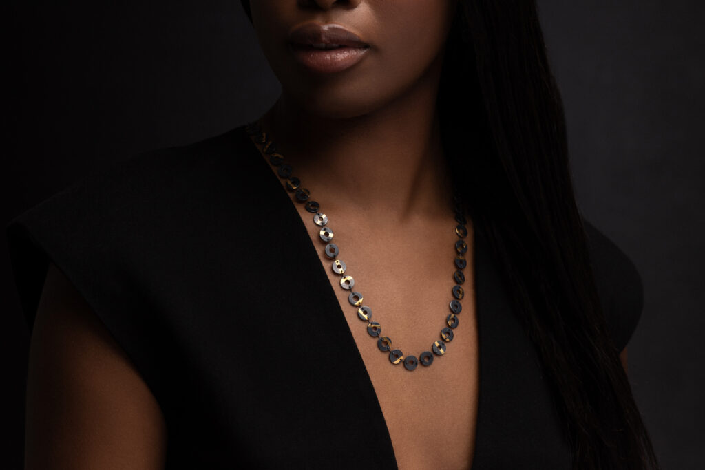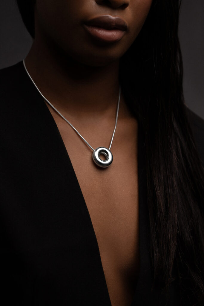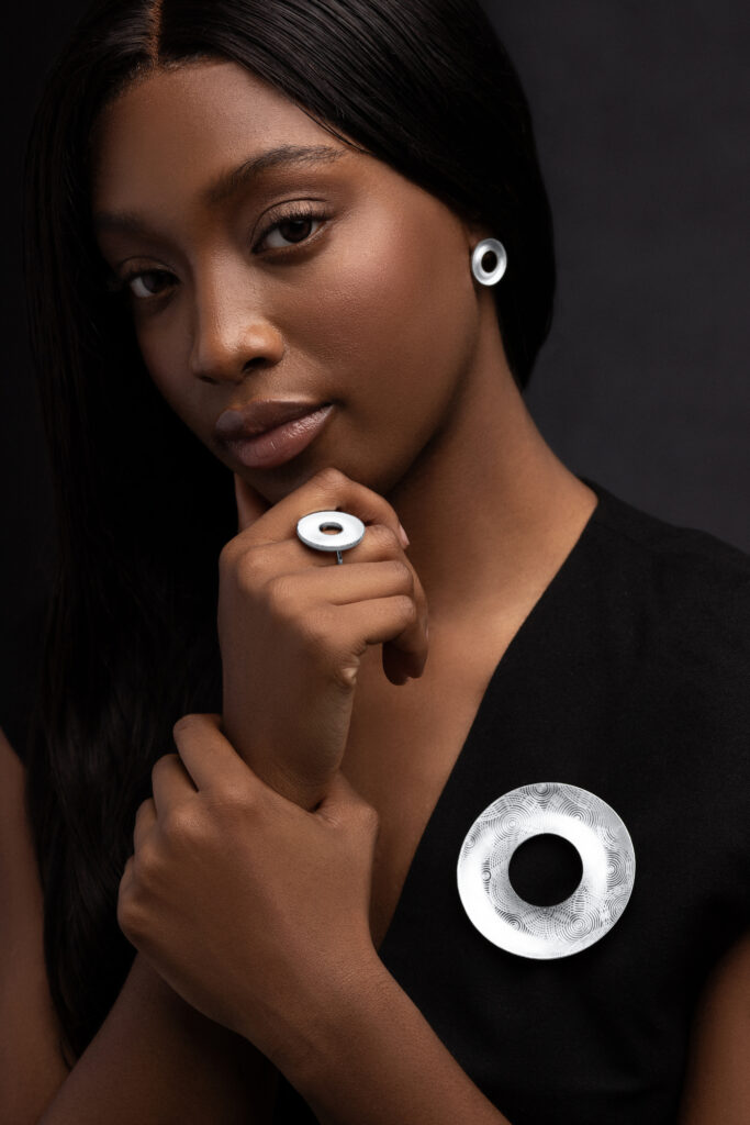 Isabella’s making process is slow, detailed, and considered. Each piece begins with the torus form and evolves through traditional techniques like Keum Boo and press forming. She works primarily in silver and gold, focusing on precision, balance, and surface texture to tell stories of journeys and cycles.