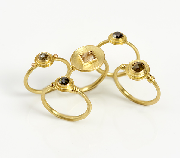 I originally trained as a graphic designer but attended a jewellery evening class and never looked back – I have been making jewellery for over 40 years. I use traditional hand tools and techniques; piercing, drilling, planishing, alloying and forging high carat gold and silver, embellished with gemstones, cabochons, beads and pearls. The gemstones are meticulously selected – the flaws and inclusions add to the unique properties of each stone. Every piece is made by me in my Sussex studio – finished using very fine emery papers resulting in a lustrous matt surface, with burnished edges.