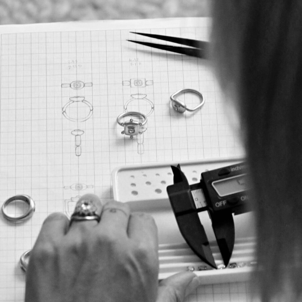 Today, Jessie continues to take an informal and playful approach to modern fine jewellery-making, seeking to grasp, ground, and gift a little fine-art alchemy to her real-world clients.