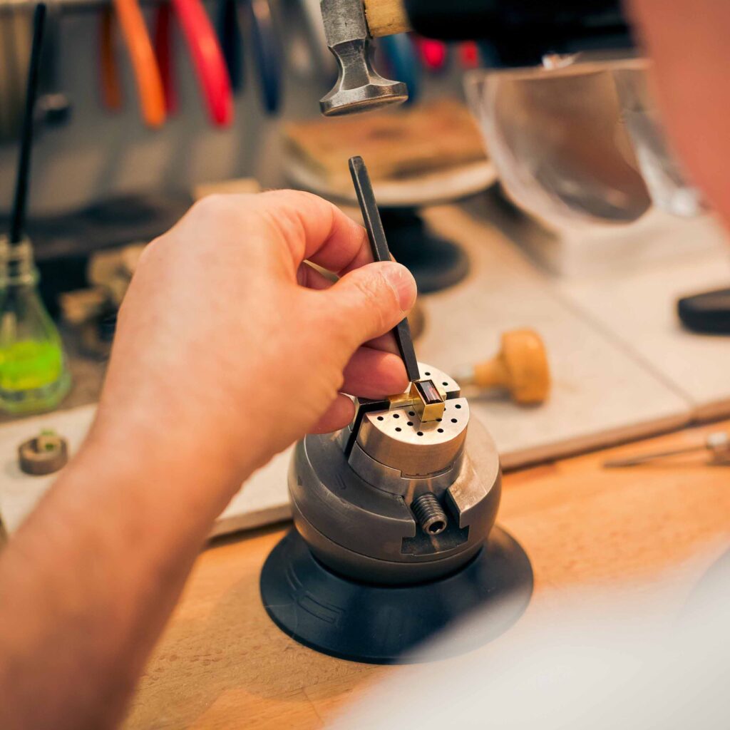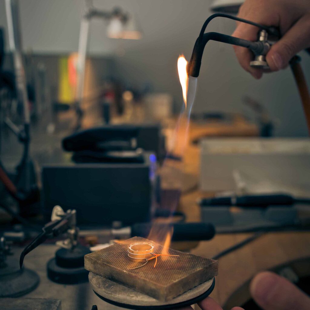 Each and every ring, pair of earrings or cufflinks is entirely handmade using time honoured goldsmith’s skills, resulting in minimalist, wearable jewels for both women and men.