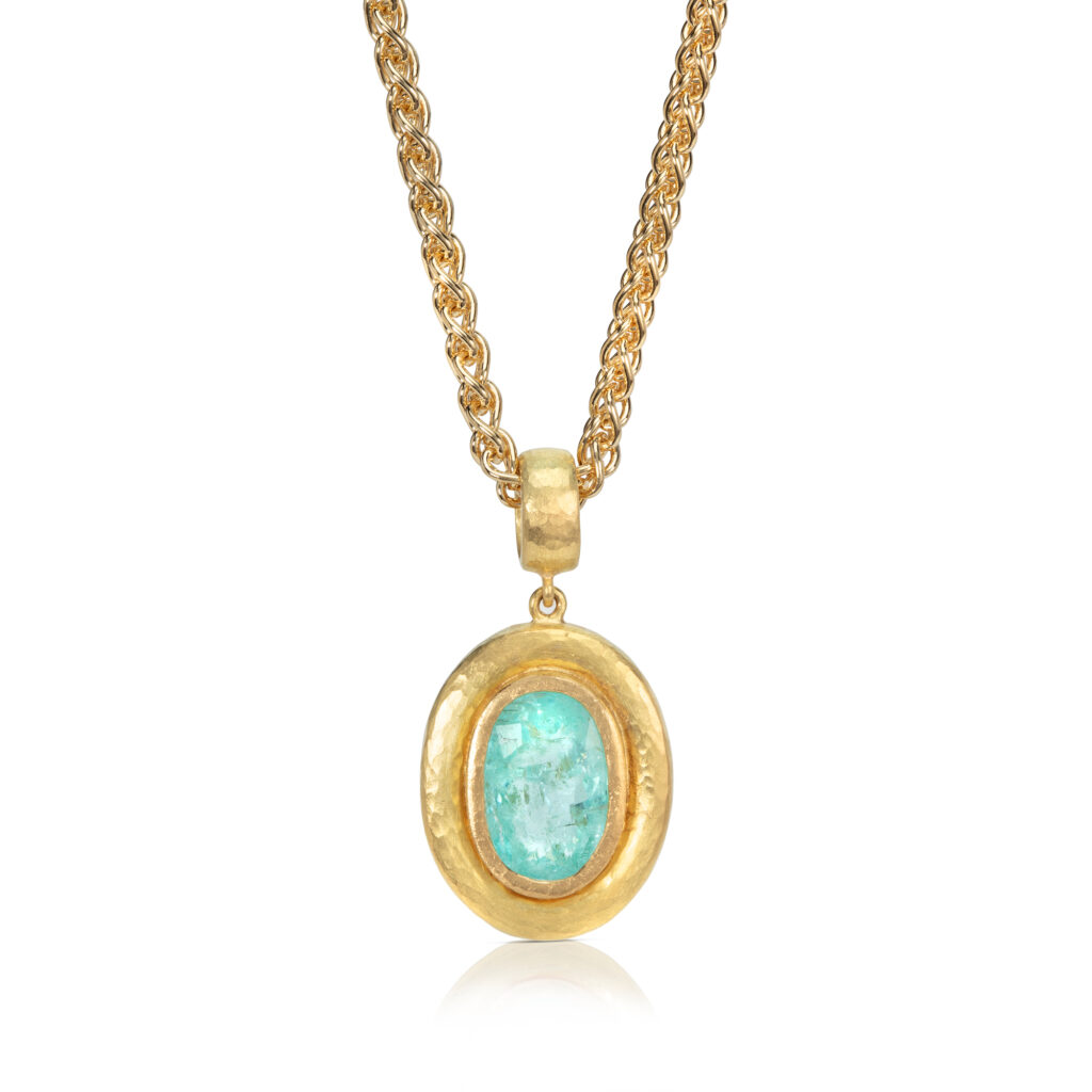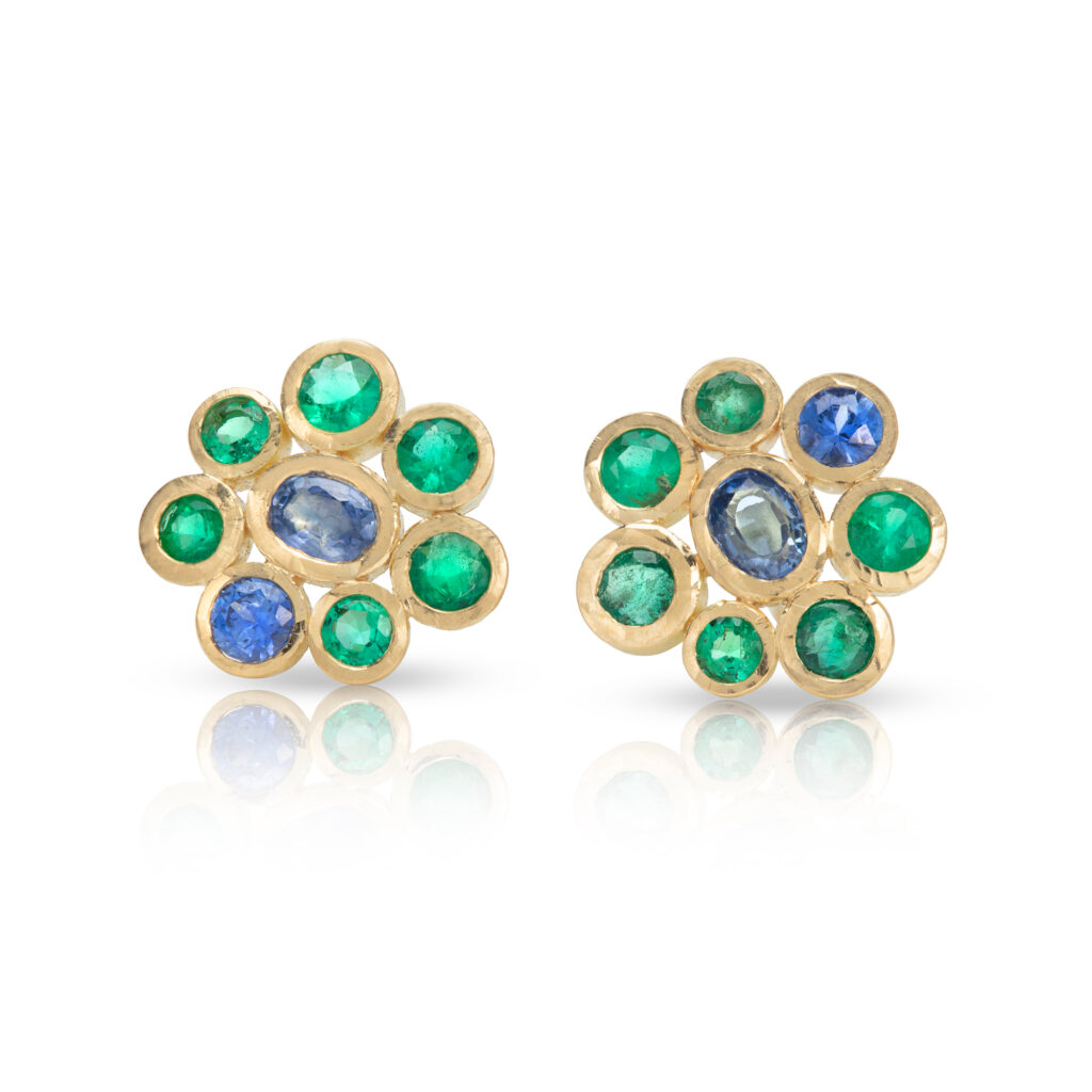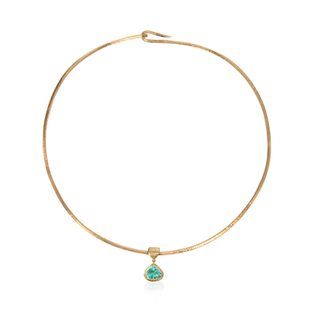 Julia’s work focuses on the intersection of colour, form and texture. She sources unusual gemstones of exceptional colour. Her innate feel for metal, proportion, and finish, combined with her eye for colour enable her to instinctively present these stones to their best potential. Her Paraiba tourmalines tend to be set in beaten yellow gold, evocative of sea and sand. While a Rhodonite garnet is enhanced by a red gold setting. It is the line engraving, surface treatment and hand finishing that renders Julia’s work at once recognisable. Her work has been described as having an ‘ancient yet timeless’ feel.