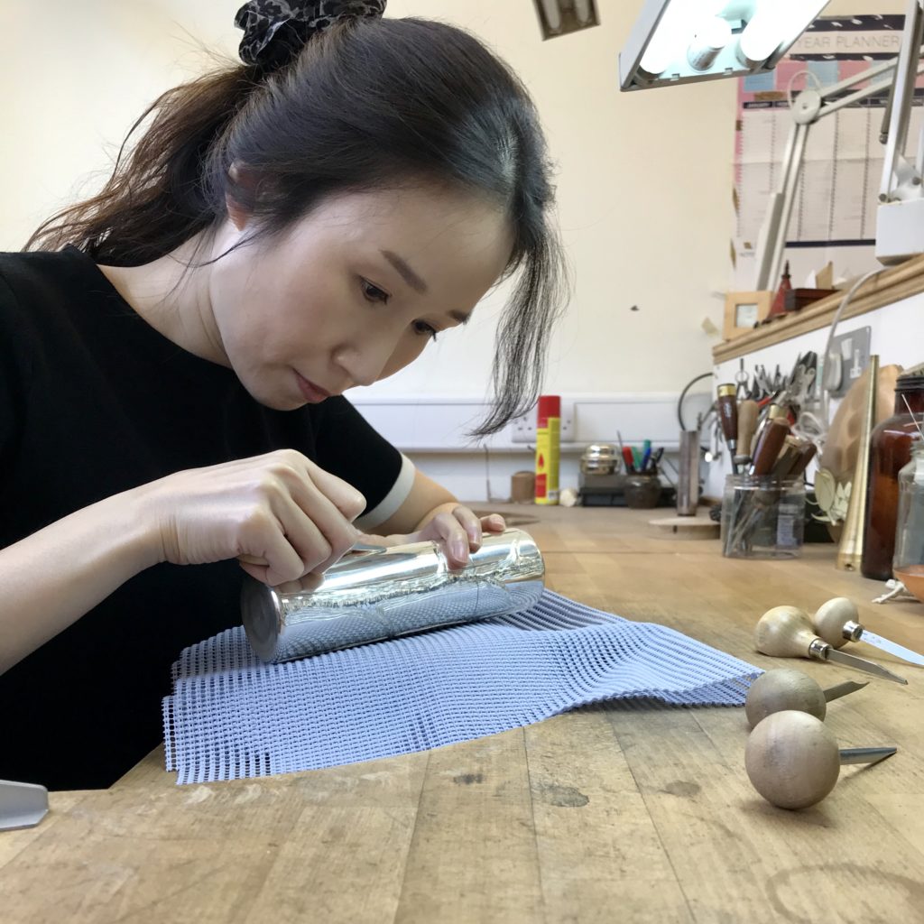Kyosun completed BA Hons Silversmithing, Goldsmithing & Jewellery at University for the Creative Arts in Rochester in 2014. She has been based in London at The Goldsmiths’ Centre since 2013, designing and making a wide range of contemporary silverware, jewellery and art medals. She regularly takes on commissions of all sizes and has exhibited internationally.