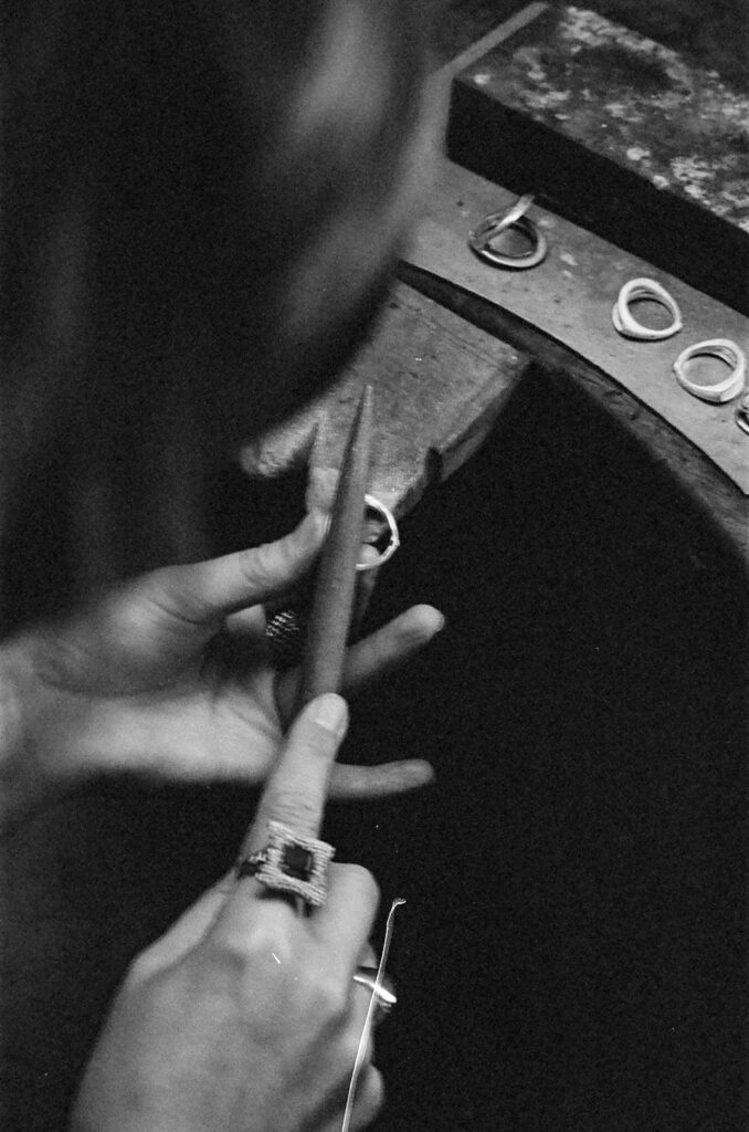 Trained in traditional goldsmithing and silversmithing, Megan has refined her craft over the last 10 years. She established her eponymous company in 2016, before going on to study at Bishopsland Educational Trust and then complete her residency at Sarabande, a foundation established by Lee Alexander McQueen. Currently, she can be found handcrafting her jewellery and sculptures in her Soho workshop, under the tutelage of renowned goldsmith Tom Scott.