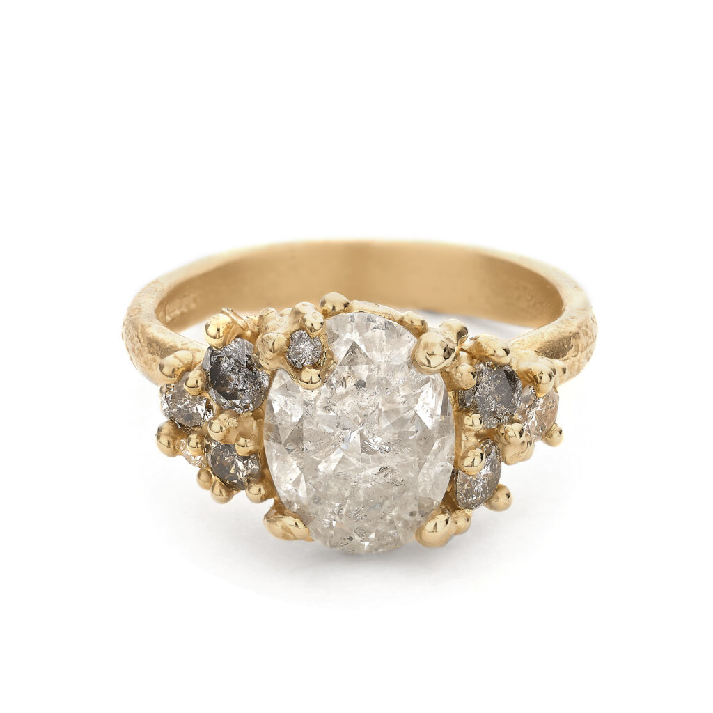 Ruth Tomlinson creates ethereal heirlooms that celebrate unconventional beauty. She champions an alternative to the traditional, producing jewellery that is beautifully designed, skilfully crafted, with a sense of enchantment and a touch of the unexpected. Her signature designs are marked by their tiny granular intricacies, ethereal character, and serendipitous imperfections – each imbued with a sense of discovery and wonder.