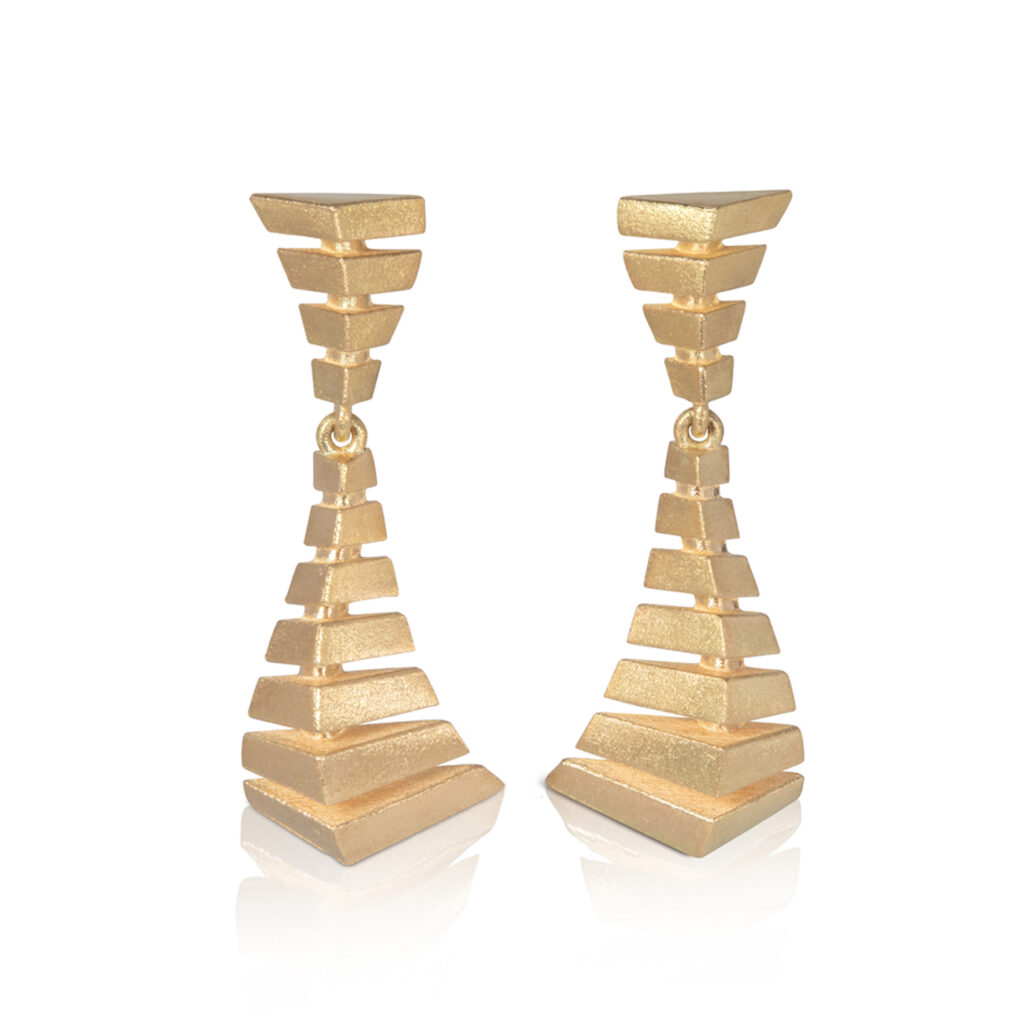 Sarah employs many different techniques in her work, from hand forging 24ct gold earrings all the way through to her skill in cutting edge 3D CAD technology (3D drawing on computer), which stems from her earlier career. The CAD technology has allowed Sarah to create her strong elegant forms, giving her defining signature style.